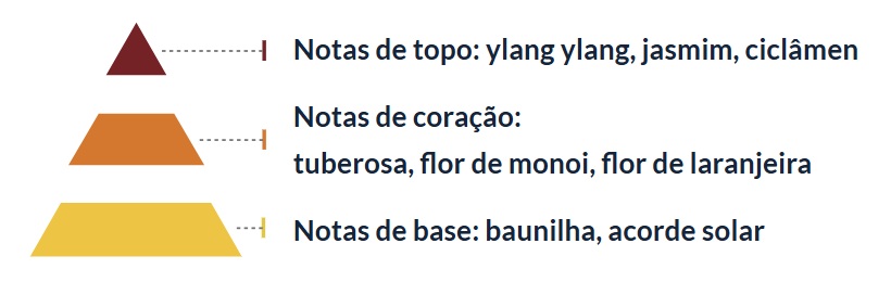 Doce combinação de flor de monoi dominante e toque de elegância de baunilha. Esta combinação especial de fragrâncias e de um belo gráfico do produto deixa-o de bom humor sempre que se olha para ele.